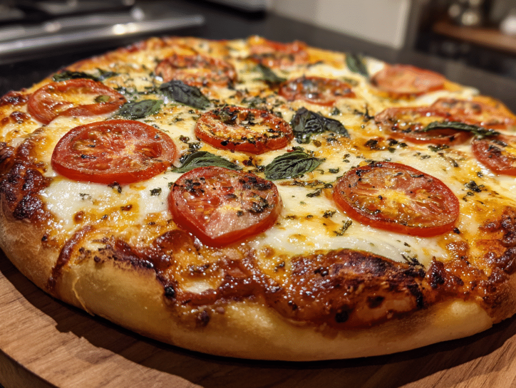 The classic Italian tomato and mozzarella pizza proves you don’t need a mountain of toppings to create something amazing. It’s about fresh ingredients, balance, and just enough effort to make you feel accomplished without breaking a sweat.